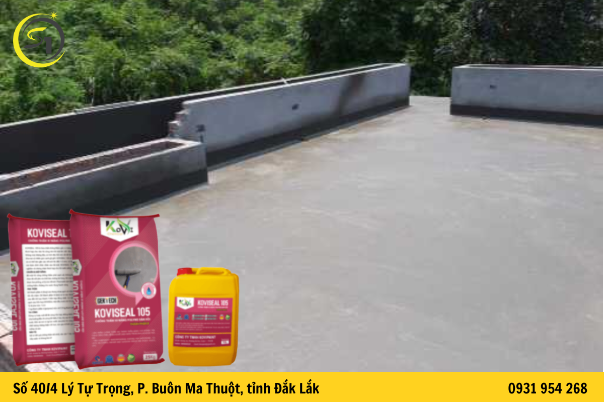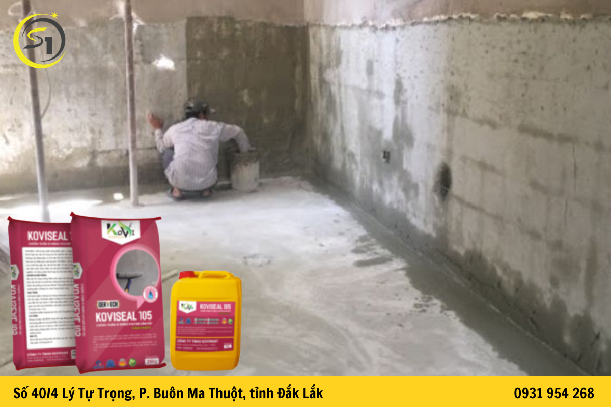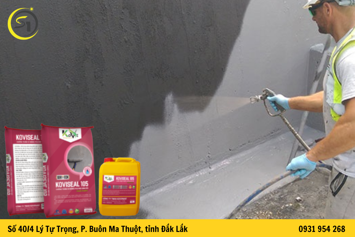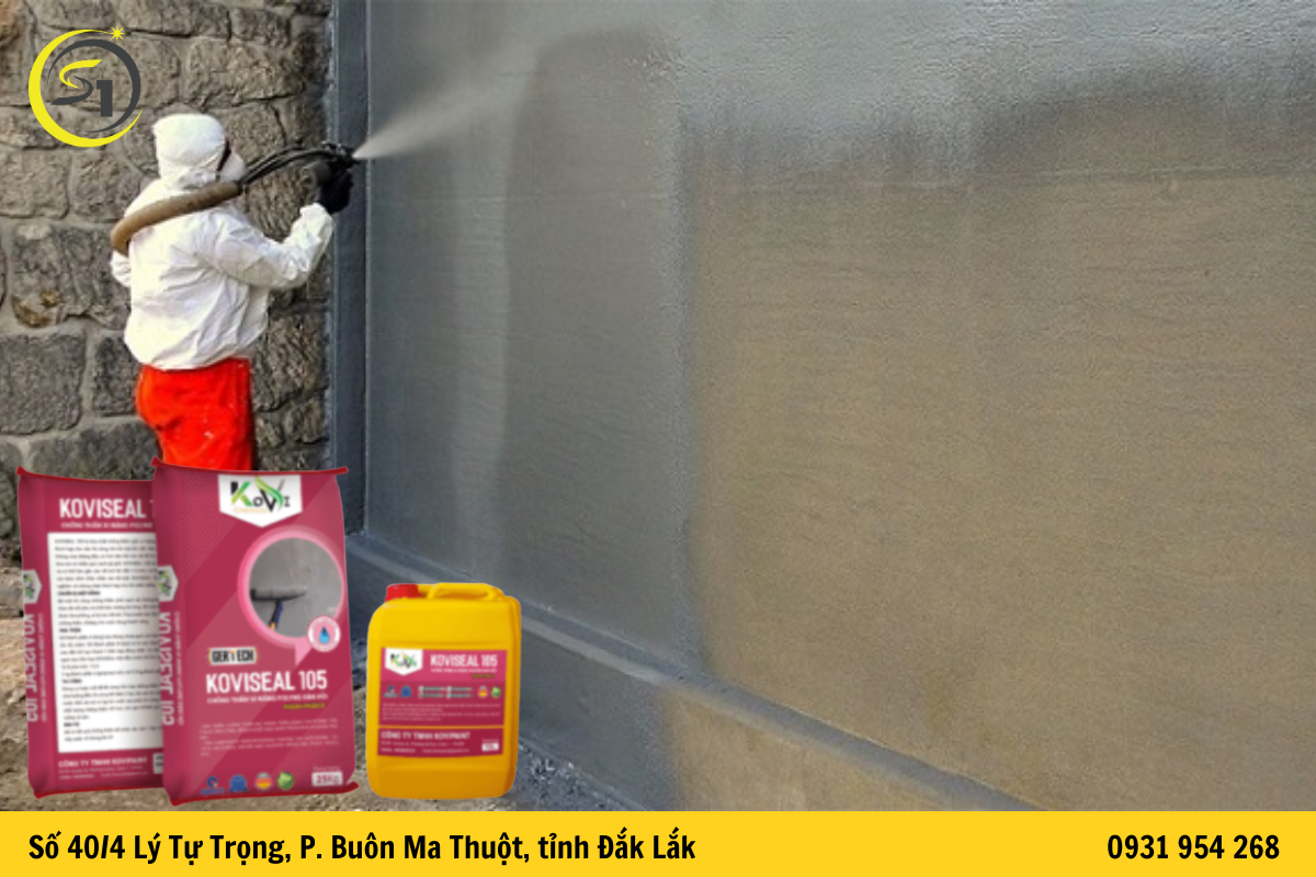 Các sản phẩm chống thấm gốc xi măng như Koviseal 105 có thể được thi công trực tiếp lên bề mặt bê tông hoặc vữa xi măng. Sau khi khô, lớp vật liệu sẽ tạo thành màng chống thấm đàn hồi giúp ngăn nước thẩm thấu vào kết cấu công trình.