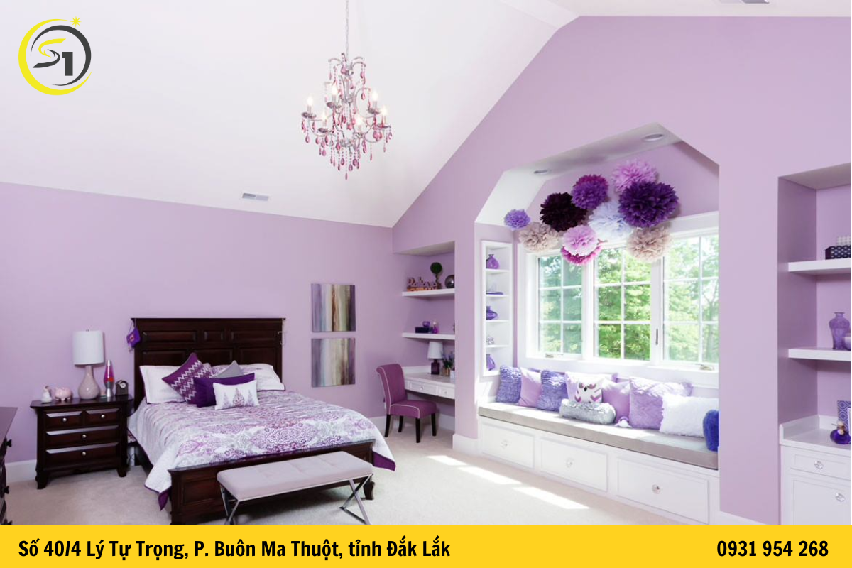 Đây là một trong những màu khá lạ khi dùng để sơn nhà. Tuy nhiên, trong xu hướng hiện đại 2022 hướng đến vẻ đẹp độc đáo, theo phong cách phương Tây thì màu tím được dự đoán sẽ là màu sơn được khách hàng vô cùng yêu thích. Bạn có thể kết hợp màu tím với màu trắng để tạo ra màu sơn có độ nhẹ nhàng nhất định.